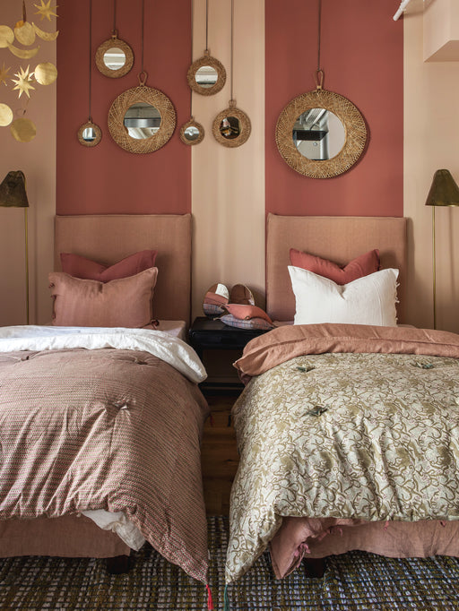 Le miroir Aena, avec son manche au style ancien, met en valeur un savoir-faire artisanal minutieux. Tressé à la main, il est disponible en deux formats complémentaires. À emporter en miroir de poche ou à accumuler sur un mur pour une déco unique, il est intemporel et plein de charme, parfait à offrir ou à s'offrir.
