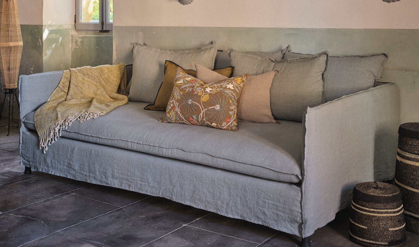 Linen sofa cover