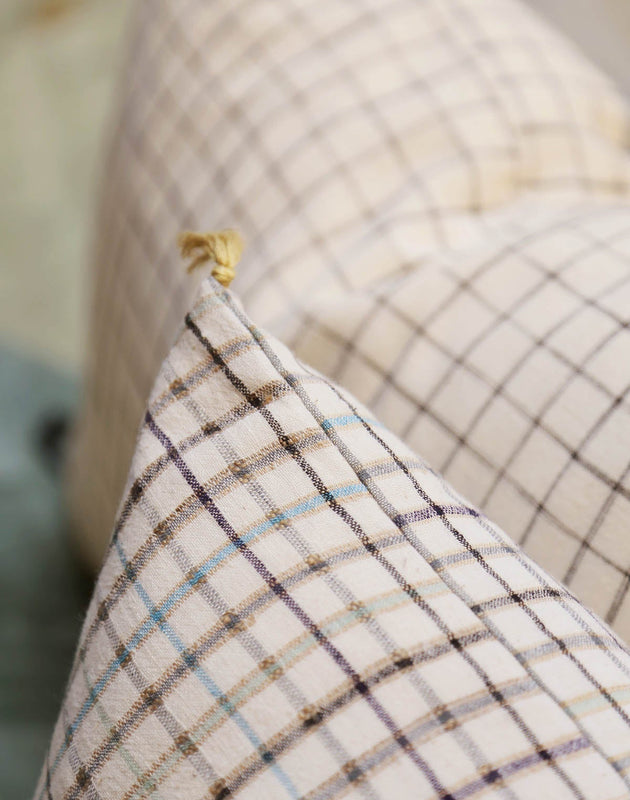 Two new patterns have been added to our collection of hand-woven cushion covers. Coming from a solidarity workshop, each piece tells the story of ancestral know-how passed down by Indian weavers, supported by the Women Weave association.