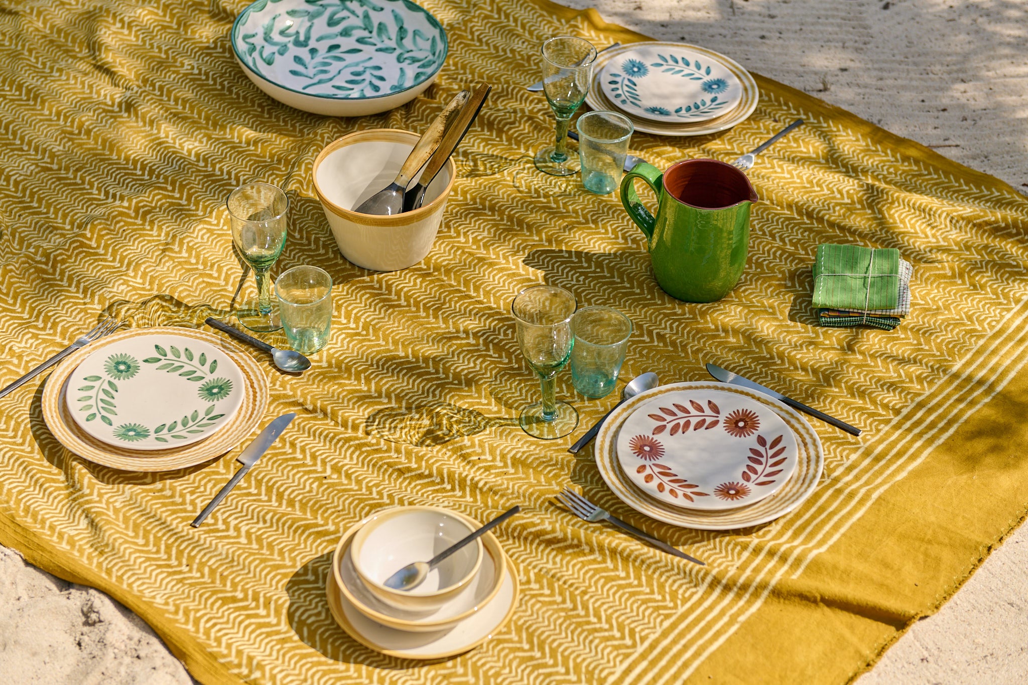 Lies in the excellence of its manufacturing process. The noble and natural linen fiber is harvested and woven in Europe. The fabric is then dyed, washed and softened, to give it this delicately crumpled texture, so voluptuous. The piece dyeing takes place in a second stage and on order, in our French workshop: a bath of color is expertly prepared, the washed linen piece is delicately immersed and slowly soaks up each shade. The dyes are revealed on contact with the fiber and offer a magical rendering: the colors vibrate deeply. Each set is then meticulously studied by us, in order to ensure that the shade is harmonious, even if each remains unique and reveals its own vibrations.