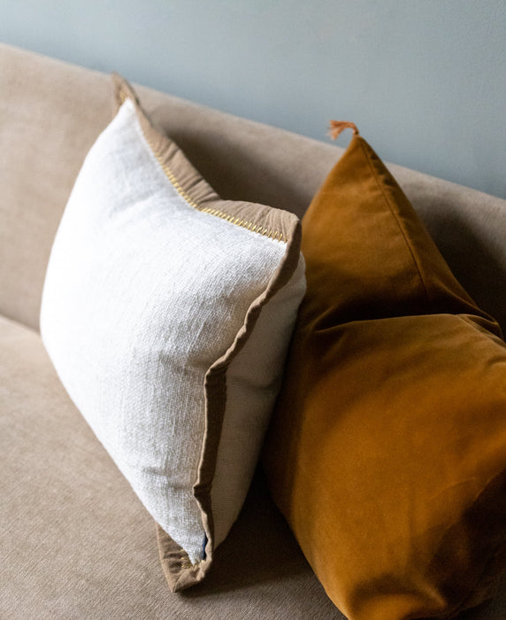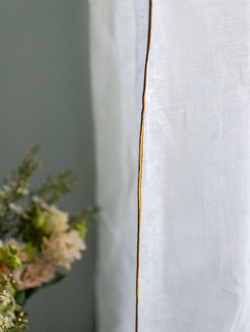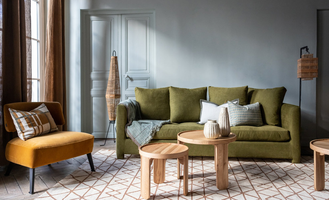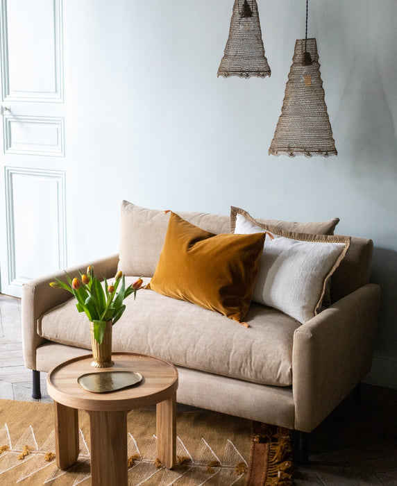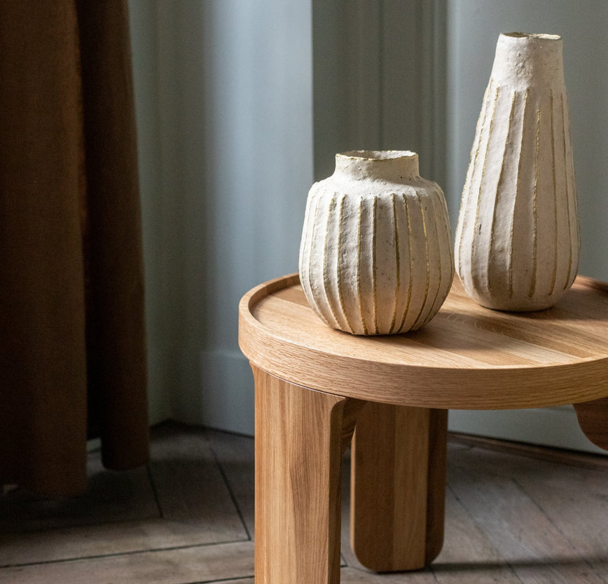 A golden thread as a hyphen, to be followed from the bedroom to the living room. Golden edging on a vase, stitching on a curtain, brass hooping on a mirror… Here and there, metallic touches warm up the Caravane pieces. A new collection, obvious and precious.