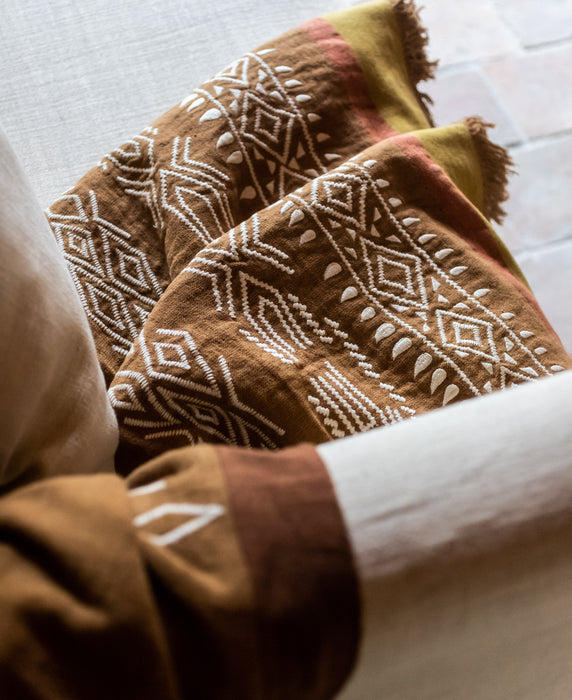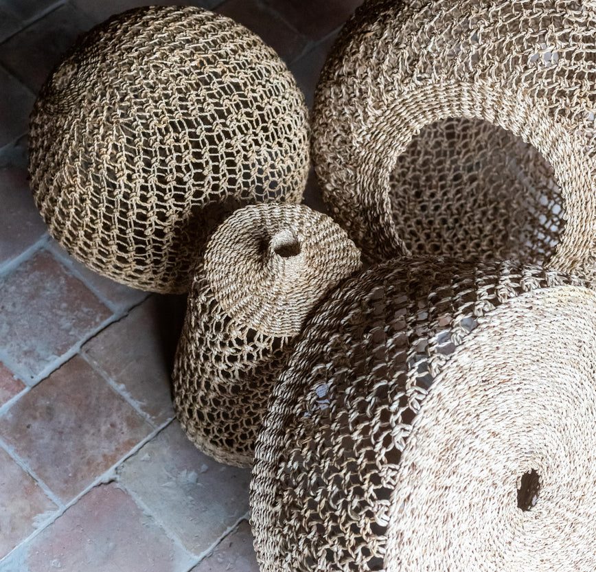 On the one hand, Niski, in wrought iron, seduces with its organic curves and sculptural allure, blending robustness and finesse. On the other, Dhara, woven from 100% natural materials, wraps the space in softness with its raw palette and ochre trail-inspired motifs. On the other, Dhara, woven from 100% natural materials, wraps the space in softness with its raw palette and ochre trail-inspired motifs, creating a warm, refined atmosphere in which every detail celebrates the harmony between design and artisana.