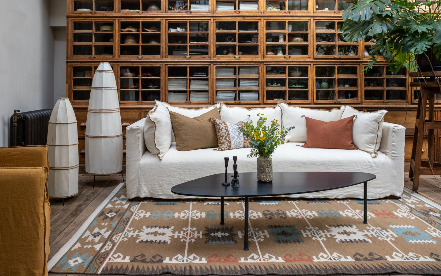The clean lines of the structure allow for harmonious integration into various spaces. This refined simplicity reflects Caravane's artisanal and modern approach.