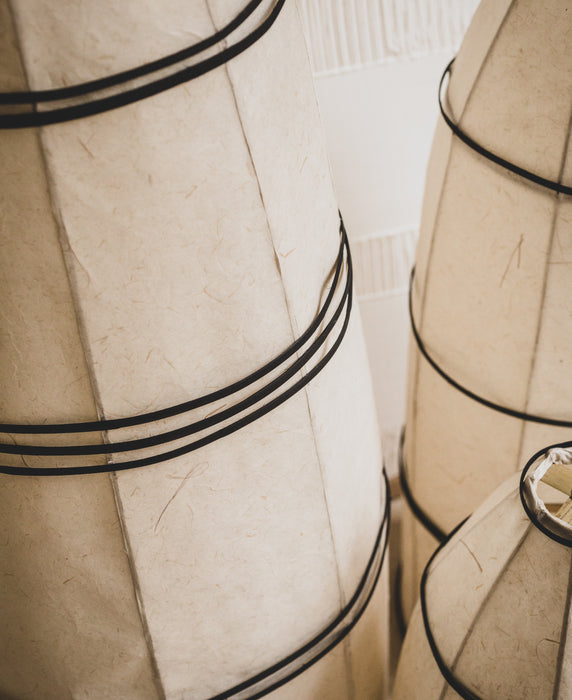 Conçues en papier végétal recyclé, bambou et rotin, Bell est le résultat d’un processus de fabrication minutieux qui valorise à la fois la beauté de la nature et le savoir-faire artisanal. Le papier végétal recyclé, est un matériau respectueux de l’environnement, issu de fibres végétales récupérées et transformées. Ce papier est façonné à la main, dans un processus artisanal qui lui confère une texture unique et organique. Chaque feuille de papier est soigneusement assemblée pour créer un abat-jour délicat et aérien, qui diffuse la lumière de manière douce et homogène.
