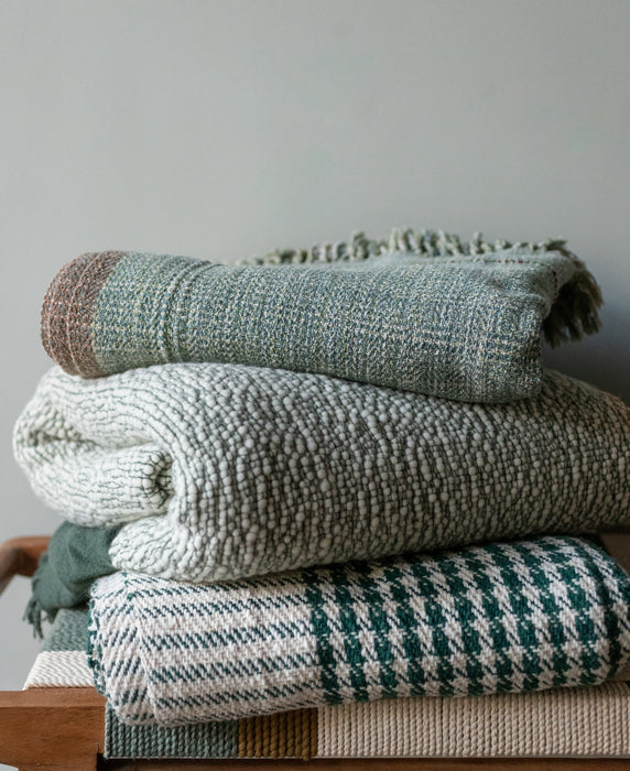Haika a la légèreté d’un nuage et la générosité de la laine. Tissé et bouilli à la main en Inde, il combine fils épais et fins pour un rendu chiné unique. Sa lisière floue souligne son côté artisanal. Disponible en Indigo, Curcuma et Chrome, pour un effet moderne et cocooning.