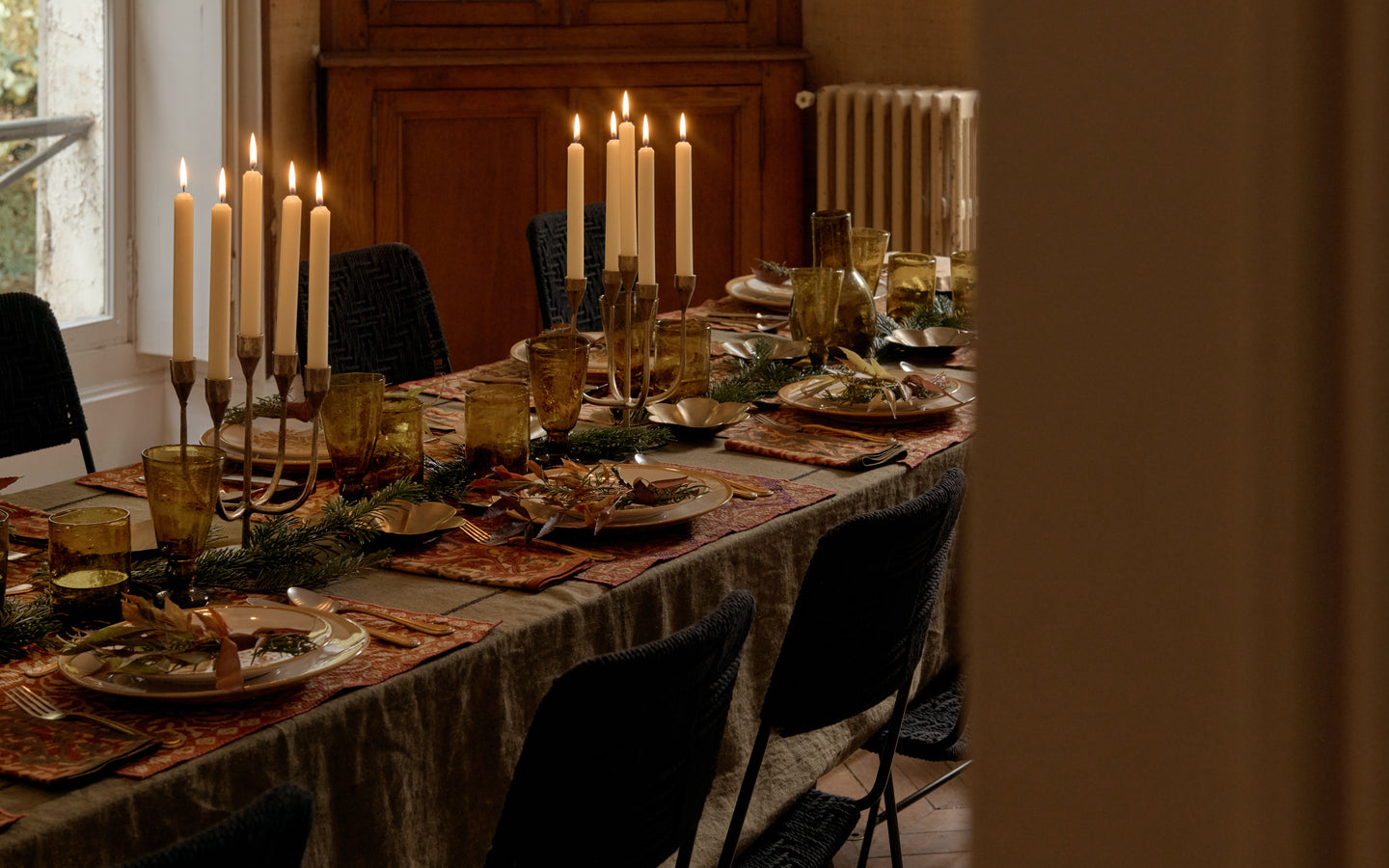 Kalis est un set de quatre sous-verres en métal doré, chacun gravé à la main d’un motif solaire différent. Leur éclat apporte chaleur et lumière à la table, comme une invitation à la convivialité et à la fête. Protégés par une finition spéciale, ils résistent à l’eau et à la chaleur, et peuvent aussi se détourner en petits centres de table ou en support à bougies.
